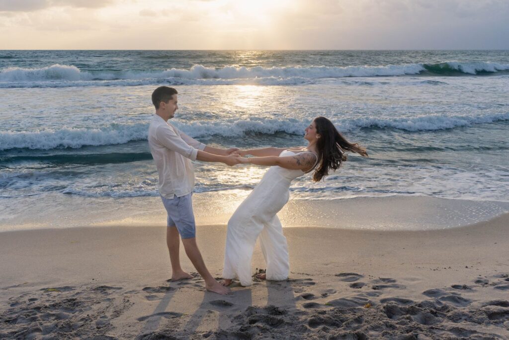 During this sunrise beach photoshoot, filled with laughter, playfulness, and affection, we captured the joy and connection that defines their relationship. A romantic sunrise photoshoot in Deerfield Beach is more than just pictures — it’s a legacy of love to treasure for years to come.